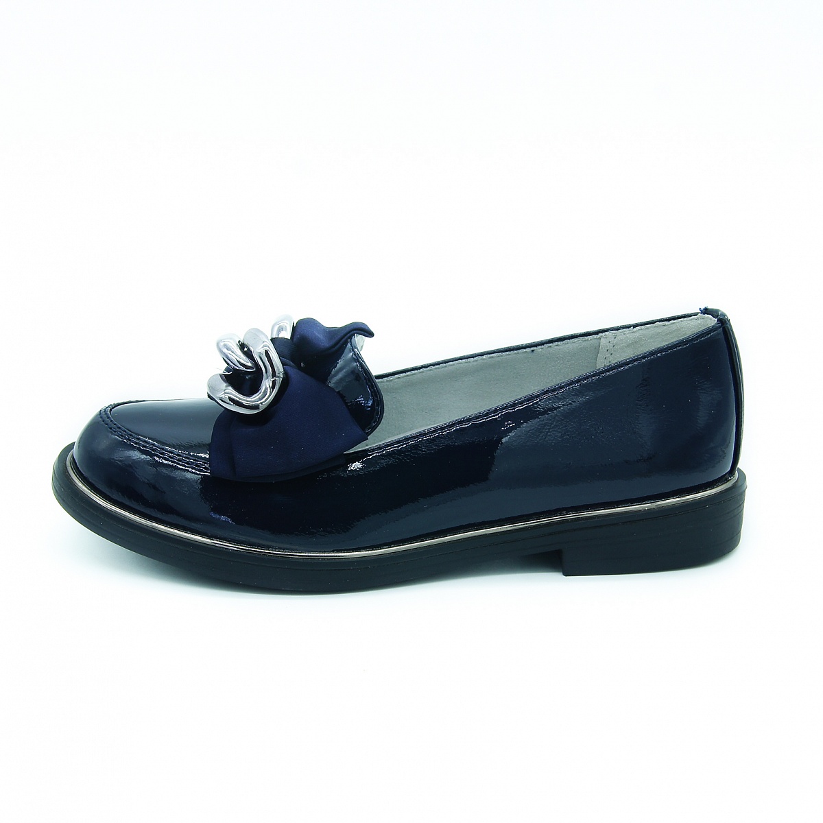 туфли-балетки с красивым украшением в темно-синем цвете.